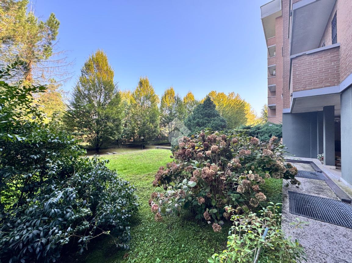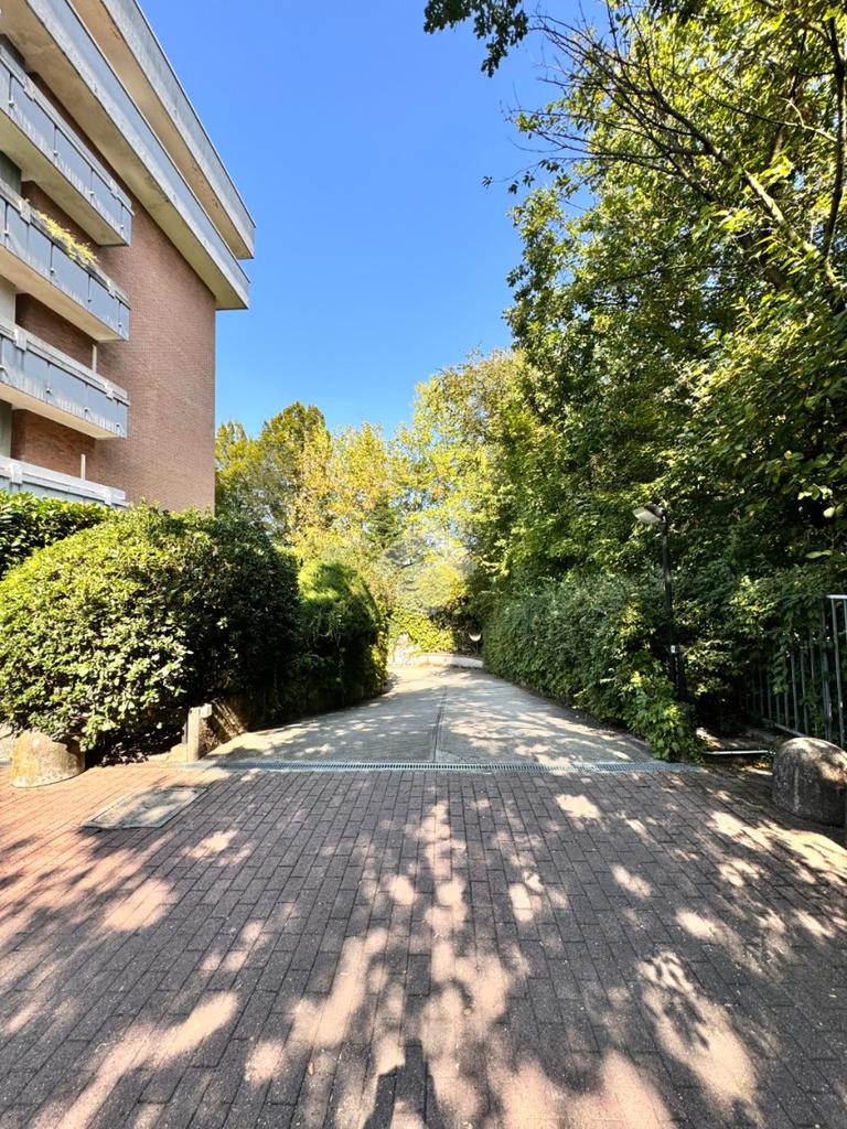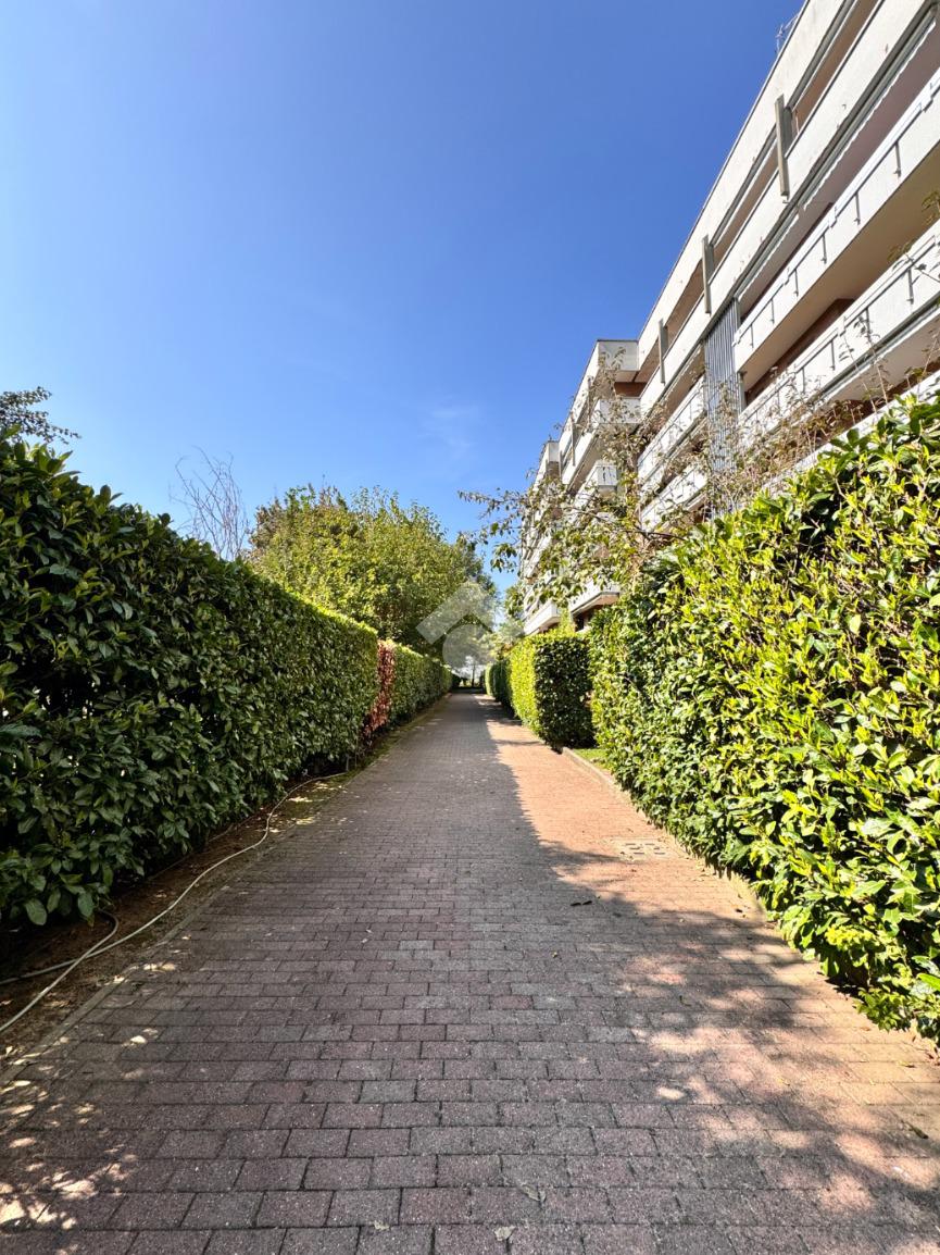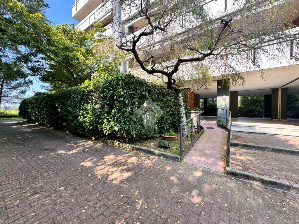 L'appartamento è sito al quarto piano di uno stabile signorile con giardino condominiale, privo di barriere architettoniche e dotato di ascensore che serve sia i piani residenziali che il piano interrato, dove si trovano i box.