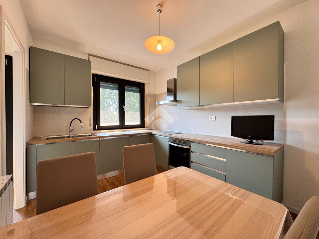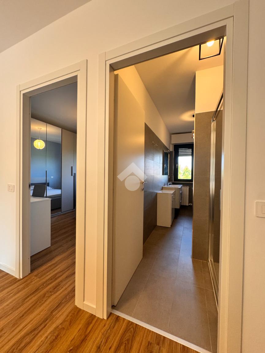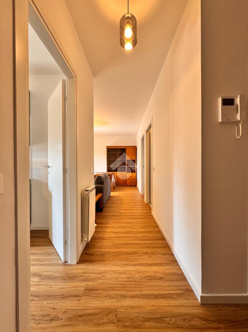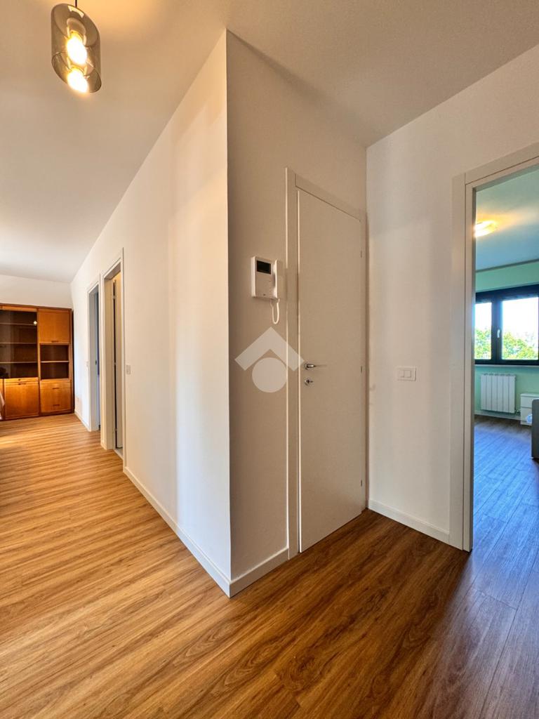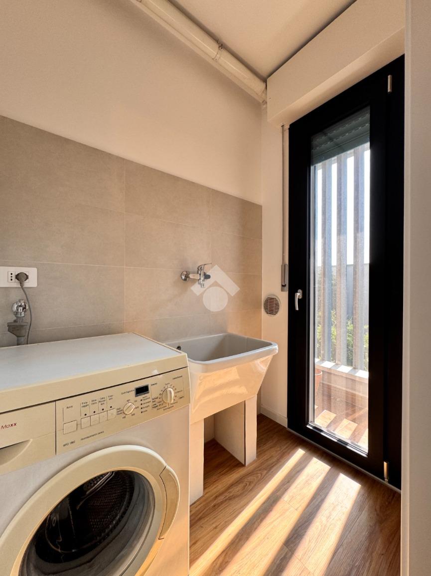 Di metratura generosa, l'appartamento è composto da un ingresso nel disimpegno dotato di comodo ripostiglio, ampia cucina abitabile dotata di locale lavanderia, soggiorno con accesso ad un ampio terrazzo vivibile, due spaziose camere da letto con vista sulle zone verdi circostanti e un bagno finestrato con vasca e box doccia.