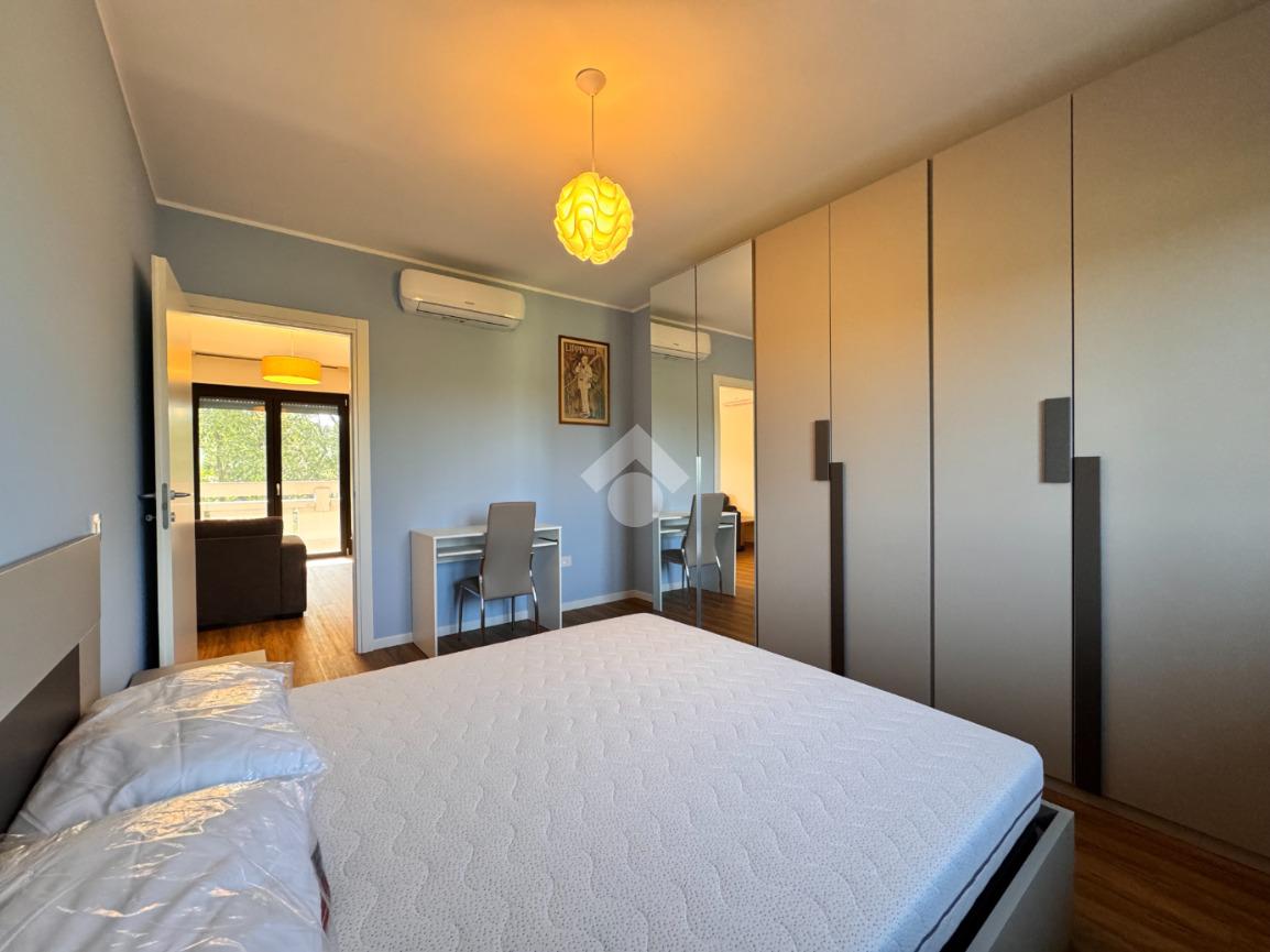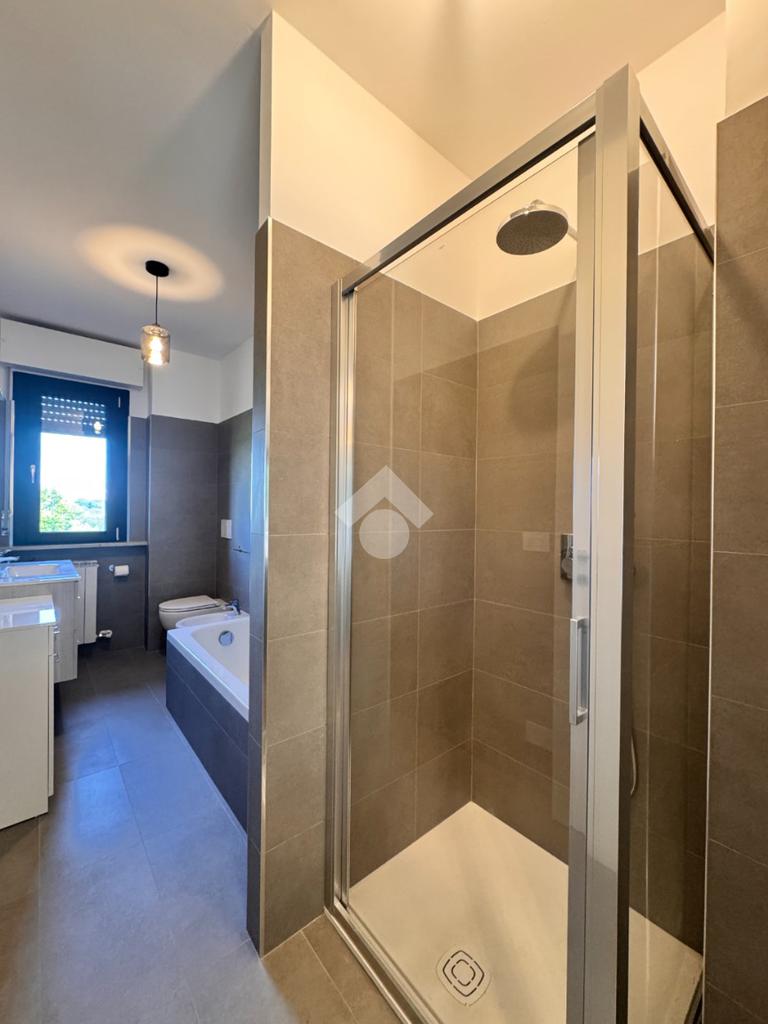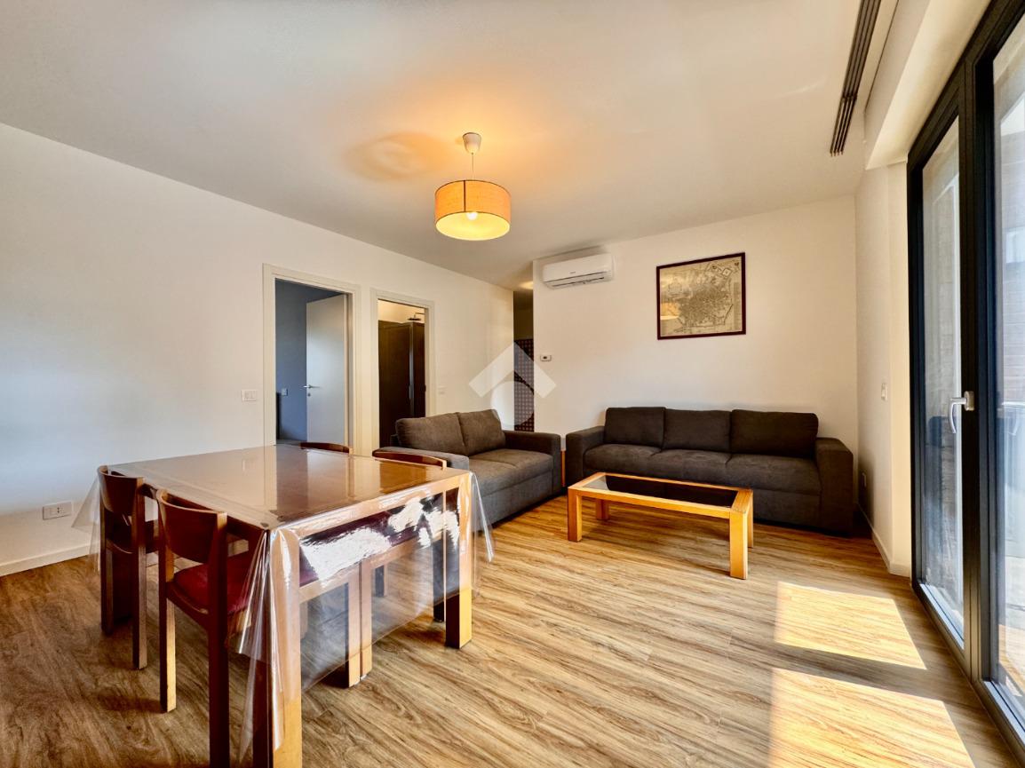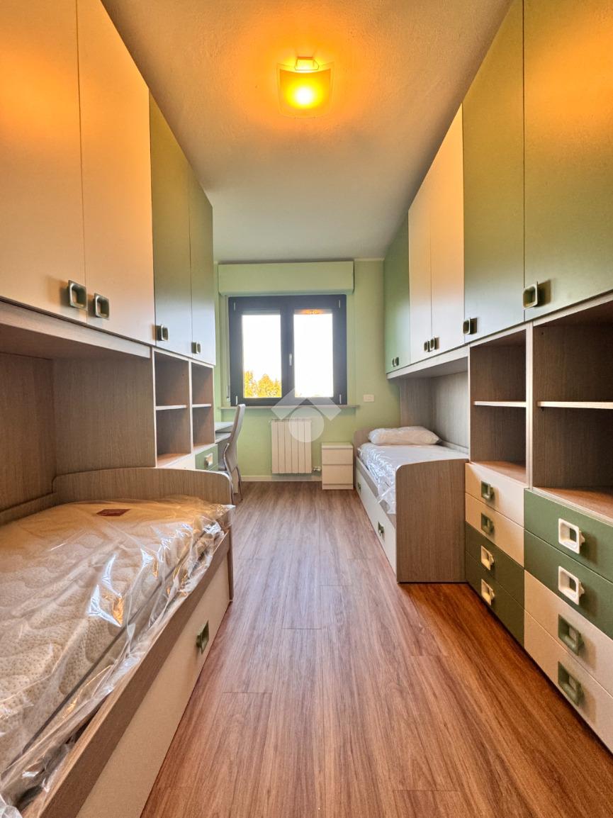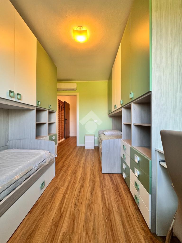 Di metratura generosa, l'appartamento è composto da un ingresso nel disimpegno dotato di comodo ripostiglio, ampia cucina abitabile dotata di locale lavanderia, soggiorno con accesso ad un ampio terrazzo vivibile, due spaziose camere da letto con vista sulle zone verdi circostanti e un bagno finestrato con vasca e box doccia.
