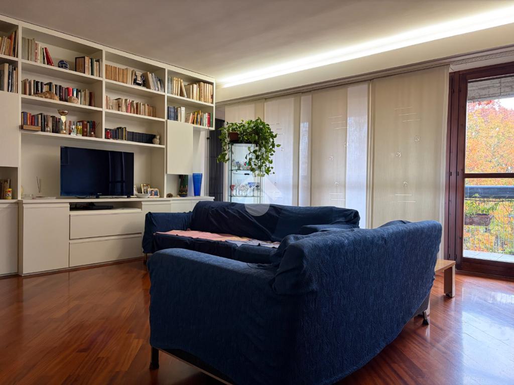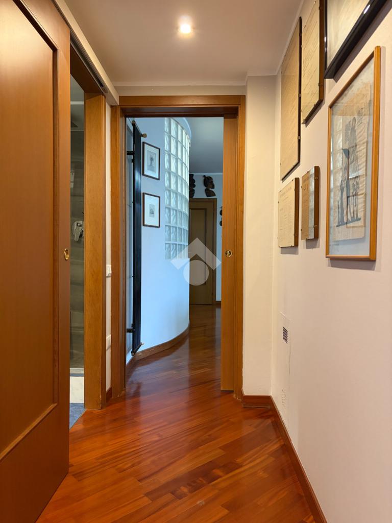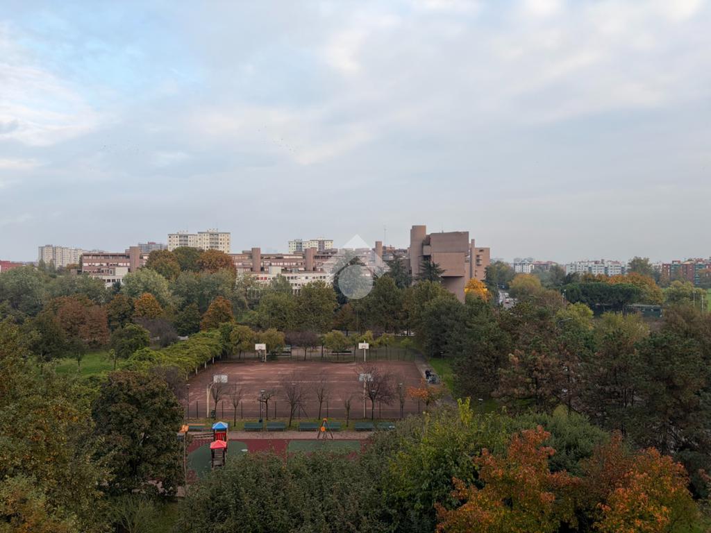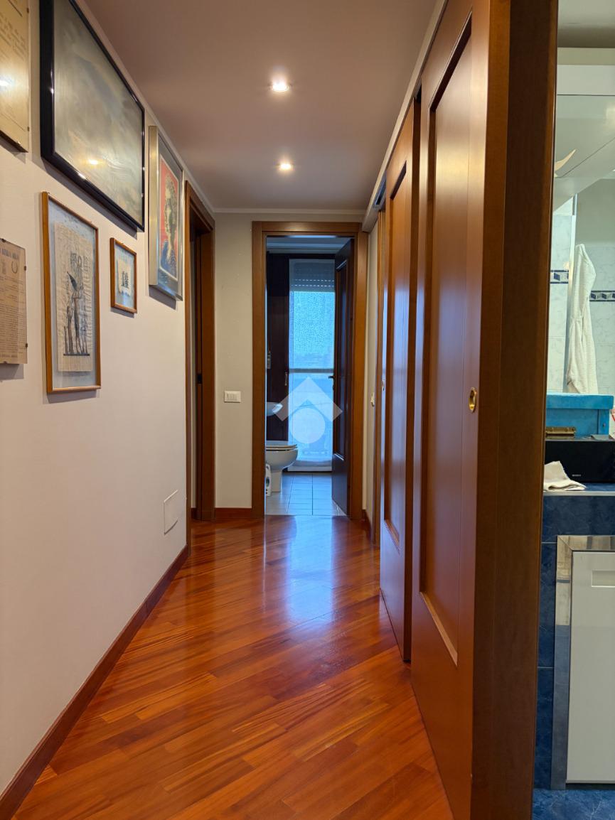 L’immobile, è una Nuda Proprietà dal taglio moderno e dalla metratura generosa sito ad un piano alto ed attualmente strutturato come trilocale ed è così composto: un salone doppio impreziosito da due ampie vetrate e da una porta finestra con affaccio sul terrazzo loggiato, con vista sul parco circostante; una spaziosa cucina abitabile. La zona notte ben disimpegnata ospita una camera matrimoniale di buone dimensioni dotata di un secondo terrazzo; una cameretta; un comodo ripostiglio, spazio vitale per le modrne esigenze abitative e due bagni, di cui uno dotato di vasca e di ampio box doccia.