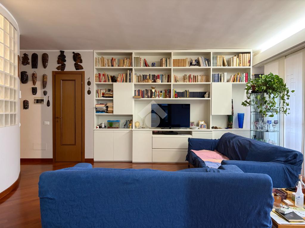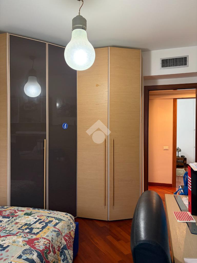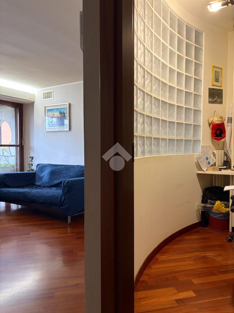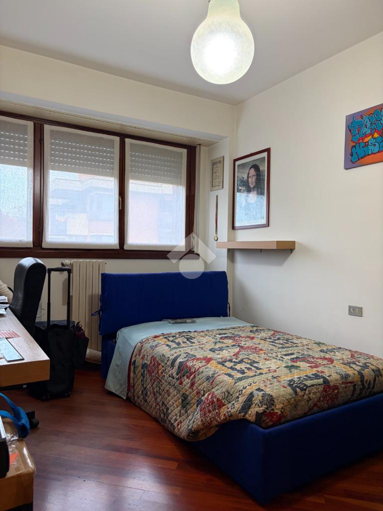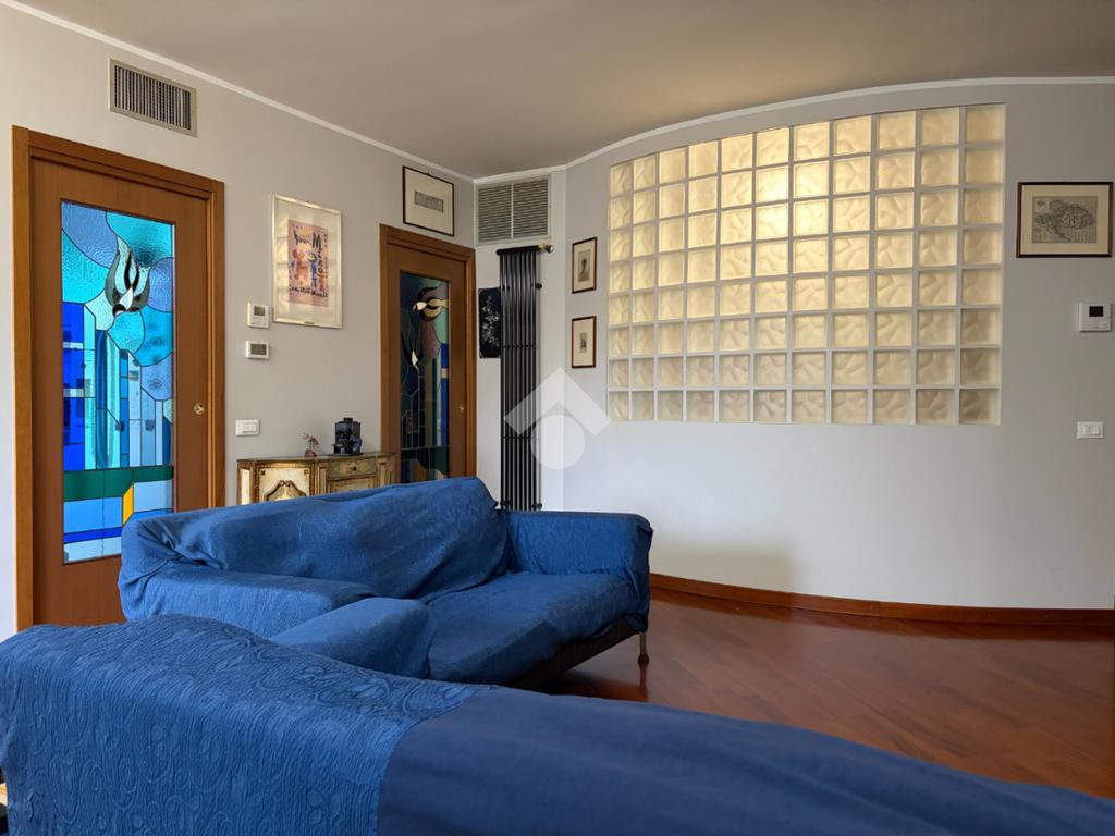 L’immobile, è una Nuda Proprietà dal taglio moderno e dalla metratura generosa sito ad un piano alto ed attualmente strutturato come trilocale ed è così composto: un salone doppio impreziosito da due ampie vetrate e da una porta finestra con affaccio sul terrazzo loggiato, con vista sul parco circostante; una spaziosa cucina abitabile. La zona notte ben disimpegnata ospita una camera matrimoniale di buone dimensioni dotata di un secondo terrazzo; una cameretta; un comodo ripostiglio, spazio vitale per le modrne esigenze abitative e due bagni, di cui uno dotato di vasca e di ampio box doccia.
