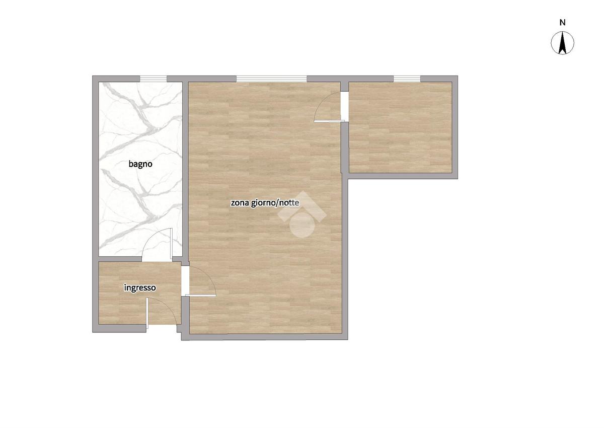 L'alloggio è più di un semplice monolocale: ha un taglio moderno e spazi razionalmente distribuiti, grazie alla presenza del cucinotto separato. Gli ambienti sono resi luminosi dalla presenza di ampie vetrate, dotate di moderni serramenti in doppio vetro; il bagno, finestrato, è ampio e moderno.
