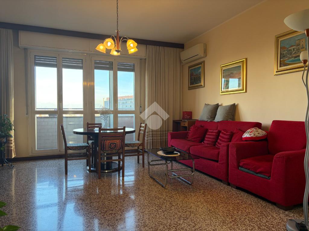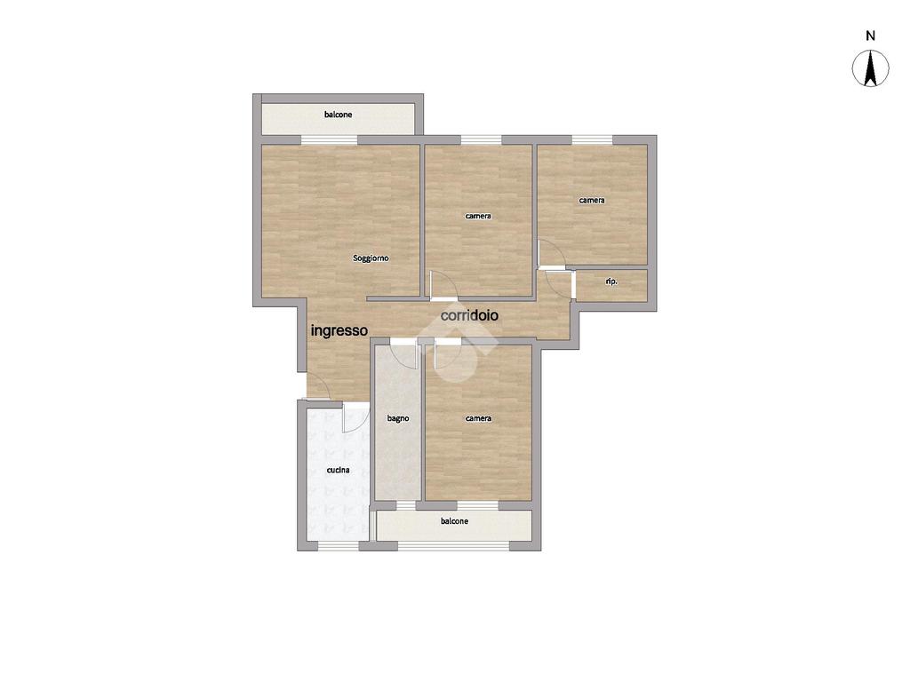 L'alloggio, dalla metratura generosa, ha un taglio razionale: ingresso, ampio salone con balcone, cucina abitabile con secondo balcone, due camere da letto matrimoniali, terza camera, bagno e ripostiglio.