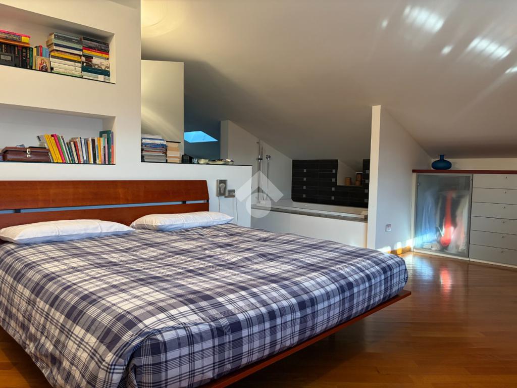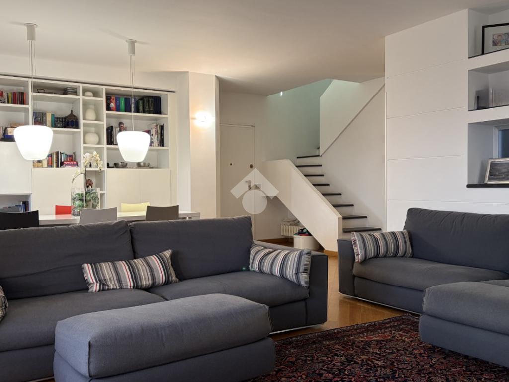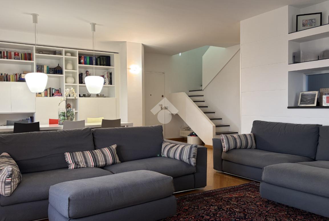 L'appartamento è una soluzione esclusiva: 170 mq distribuiti su due livelli collegati internamente, ma con possibilità di accesso indipendente che garantisce privacy e flessibilità. Entrando, si viene accolti da un luminoso soggiorno che si apre su una terrazza loggiata con vista sul centro di Milano, una vista che trasforma ogni momento in un'esperienza. L'ampia cucina abitabile si apre su un balcone che porta aria fresca e luce alla routine quotidiana. Sullo stesso livello si trovano una camera da letto, ideale come studio o camera per gli ospiti, un bagno, una comoda lavanderia e un pratico ripostiglio: spazi pensati per soddisfare le esigenze di una famiglia dinamica e moderna. Una scala in mattoni a vista, leggermente inclinata, conduce al piano superiore, offrendo un'atmosfera più intima. La camera da letto principale è un vero rifugio: luminosa ed elegante, con bagno privato, vasca freestanding che aggiunge un tocco di esclusività e terrazza panoramica che offre una vista privilegiata sulla città. Sullo stesso livello si trovano anche altre due camere da letto e un bagno, creando una zona notte completa e armoniosa.