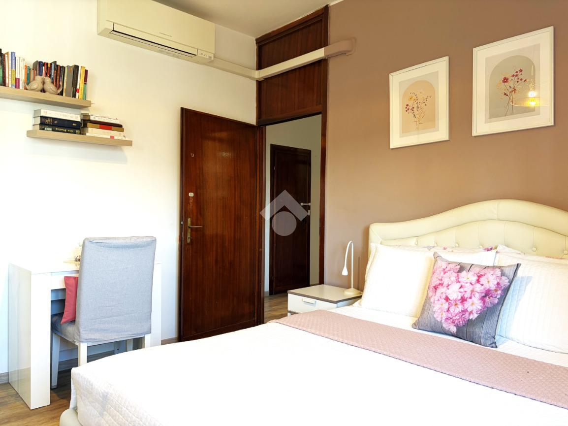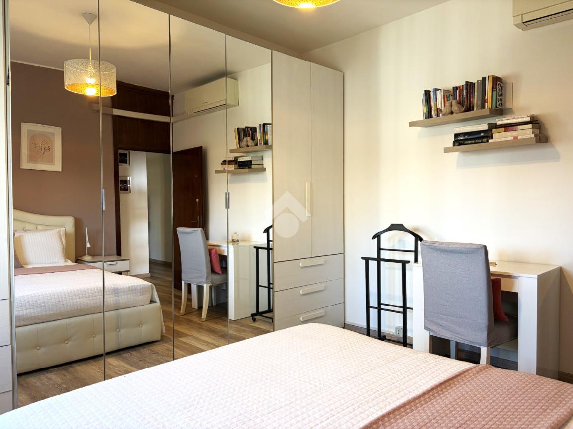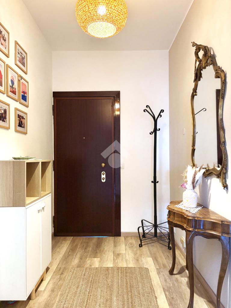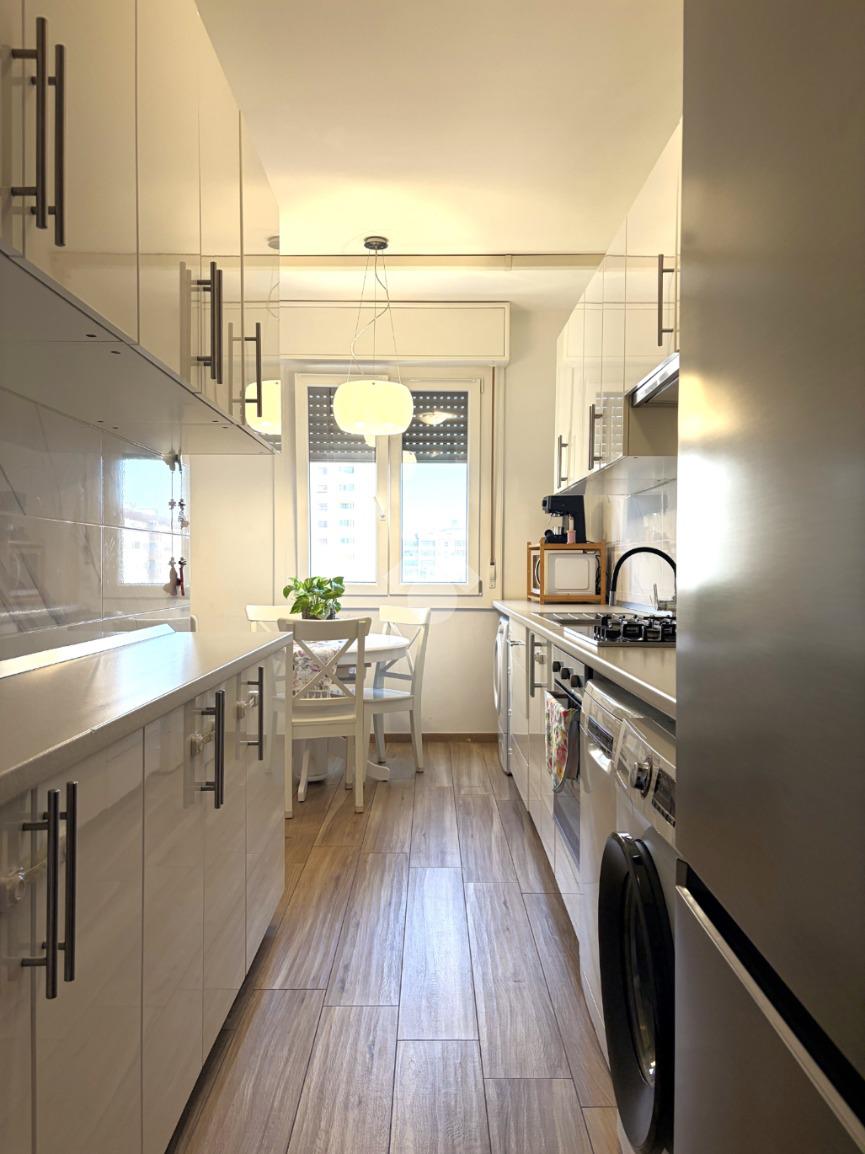 L’appartamento, posto a un piano alto, gode di una doppia esposizione che garantisce luminosità durante tutta la giornata e una piacevole vista sul verde circostante. L’immobile si distingue per un taglio moderno e razionale degli spazi: l’ingresso si apre su un accogliente disimpegno che, insieme al corridoio, separa in modo funzionale la zona giorno dalla zona notte.