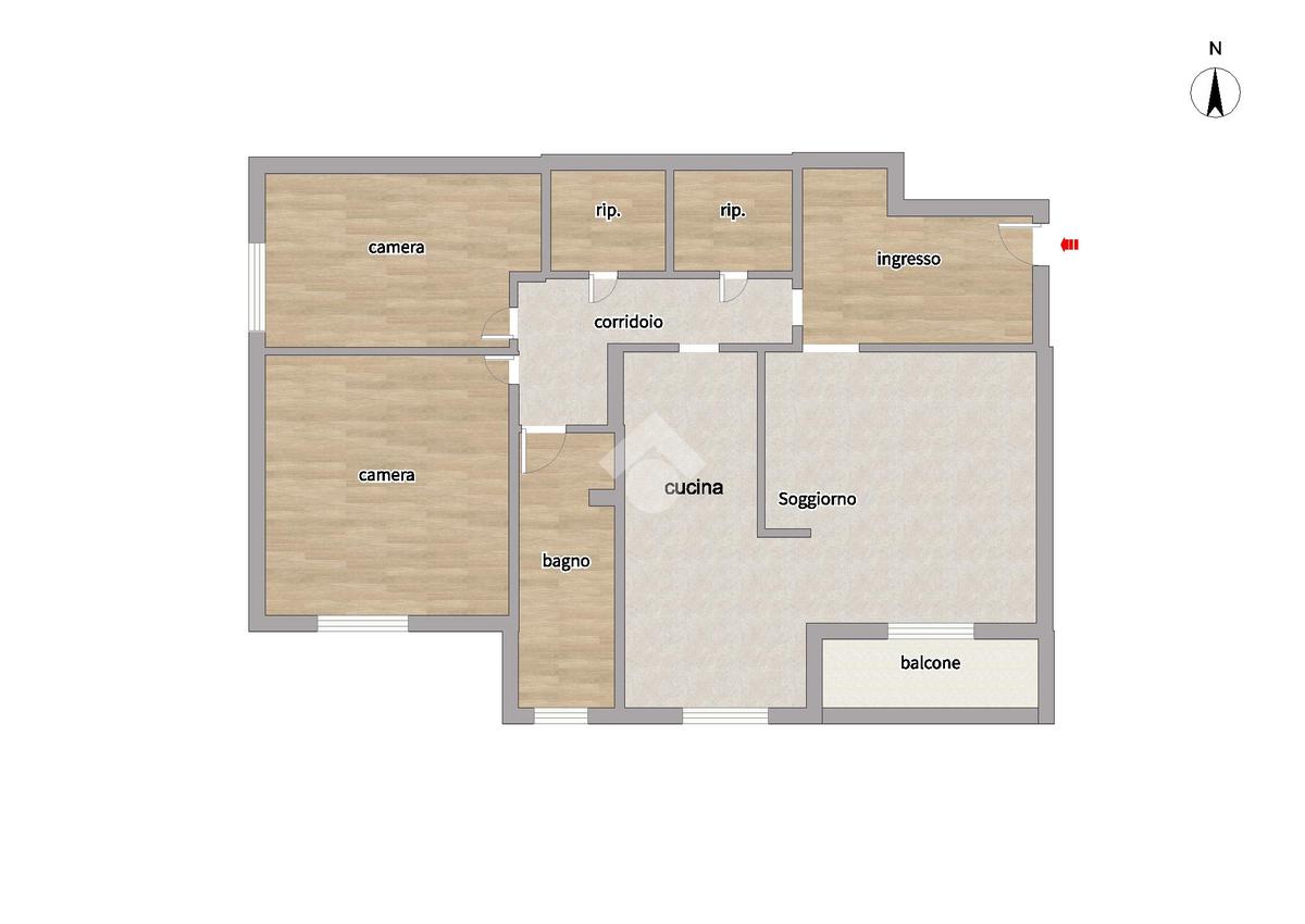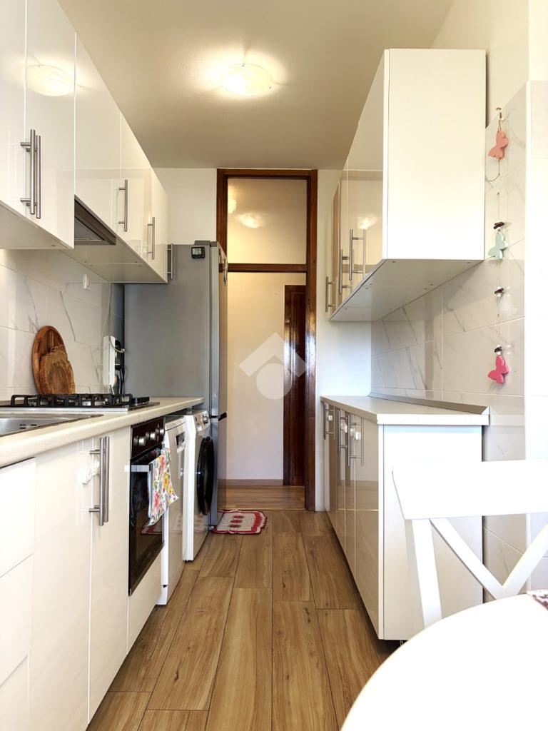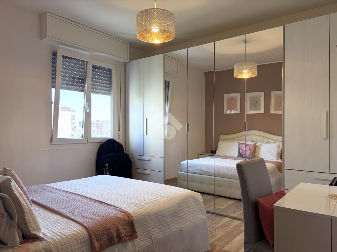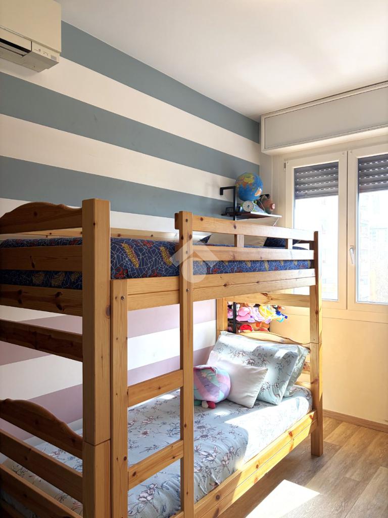 L’appartamento, posto a un piano alto, gode di una doppia esposizione che garantisce luminosità durante tutta la giornata e una piacevole vista sul verde circostante. L’immobile si distingue per un taglio moderno e razionale degli spazi: l’ingresso si apre su un accogliente disimpegno che, insieme al corridoio, separa in modo funzionale la zona giorno dalla zona notte.