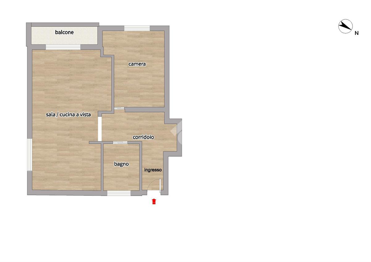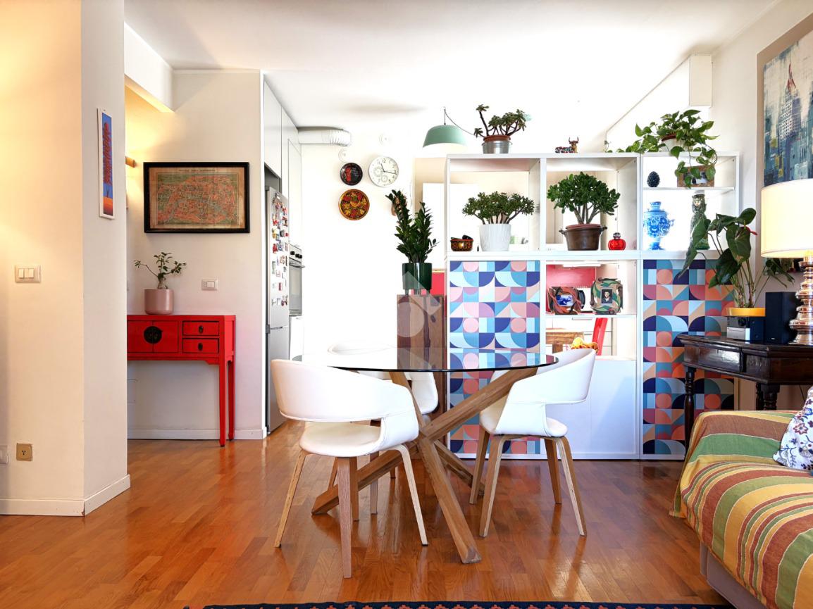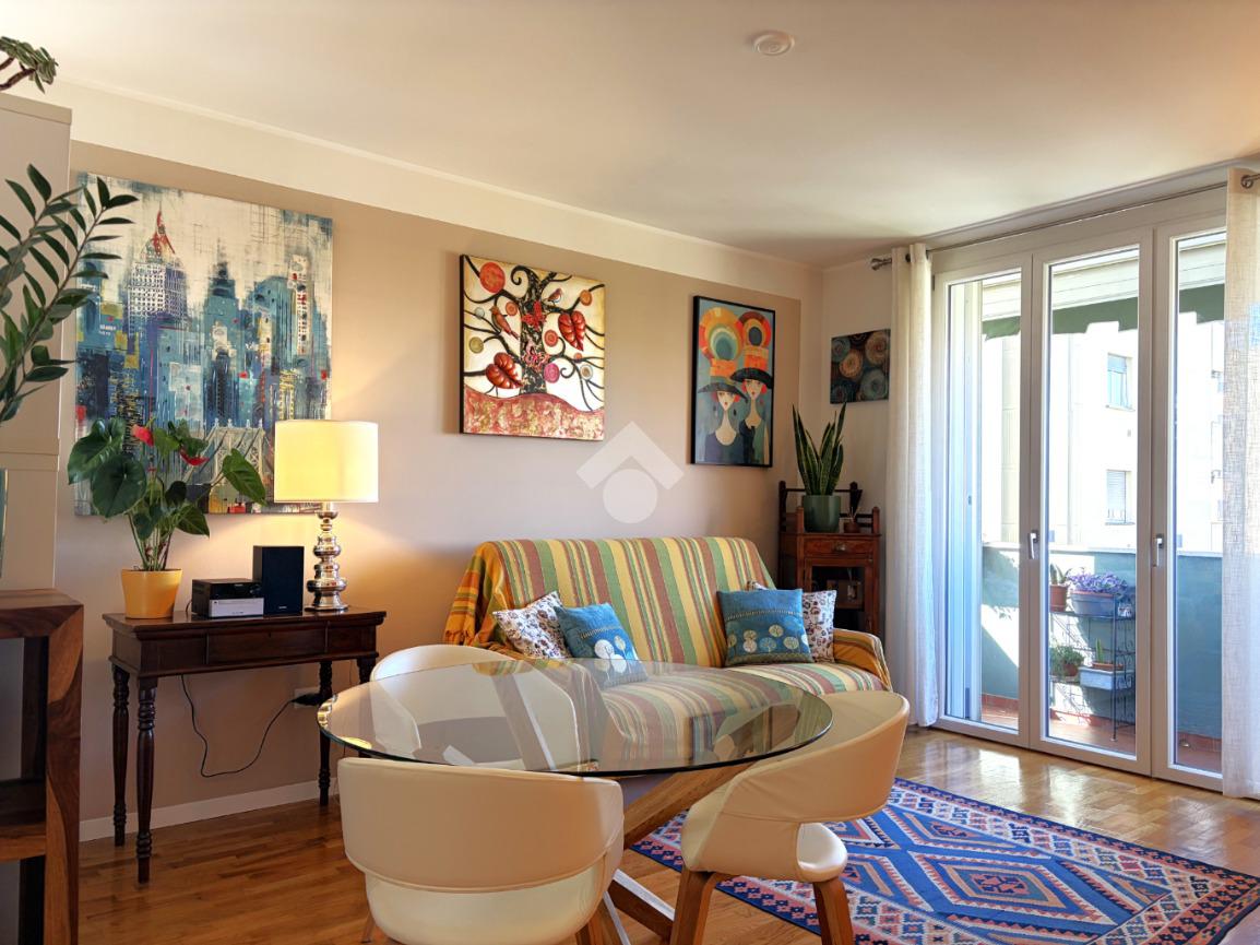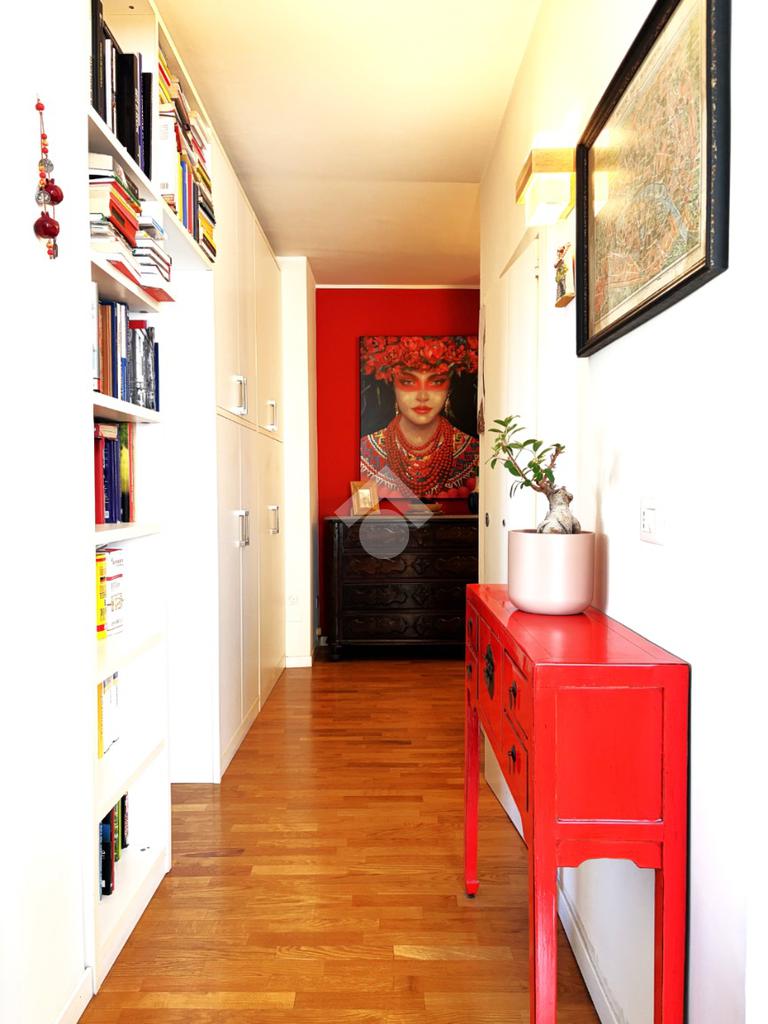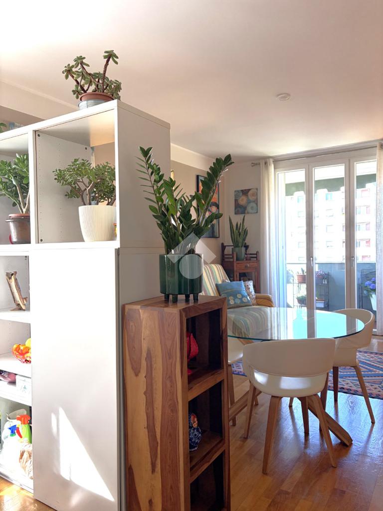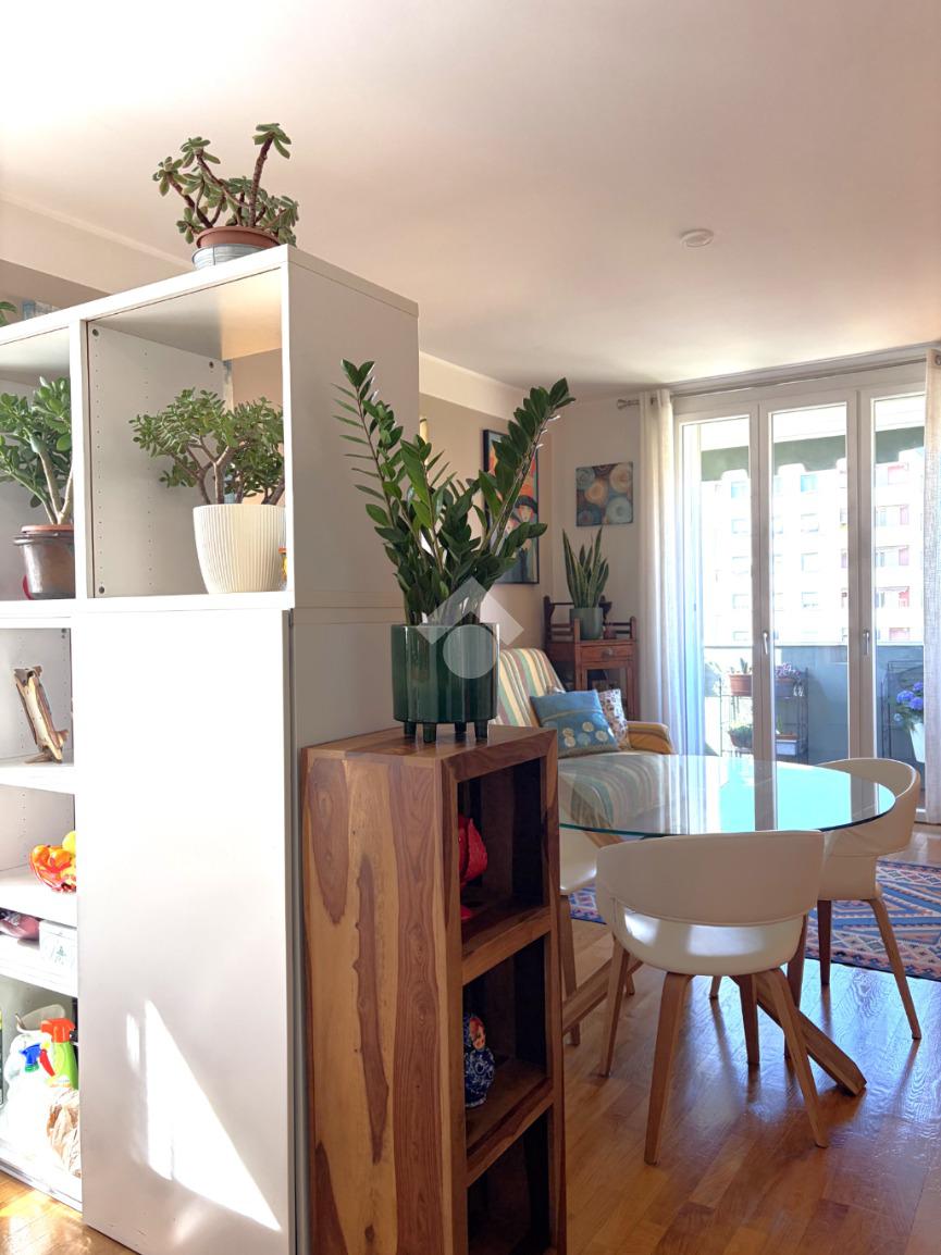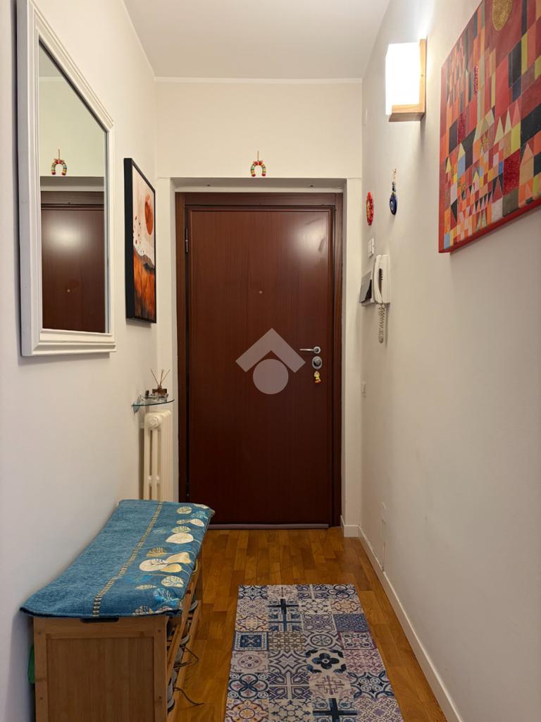 L’appartamento si distingue per una distribuzione degli spazi funzionale e contemporanea: il disimpegno, accogliente e ben organizzato, è dotato di armadiatura guardaroba su misura, pensata per ottimizzare gli spazi. La zona living, luminosa grazie al suo affaccio ad ovest, si apre sul balcone, da cui si gode di una piacevole vista sul verde, creando un ambiente ideale per momenti di relax e convivialità. La cucina, integrata nel soggiorno ma dotata di autonomia funzionale, dona all'alloggio un taglio moderno mentre la zona notte ospita una camera matrimoniale confortevole. Il bagno finestrato è rifinito con box doccia in cristallo, dal design attuale.